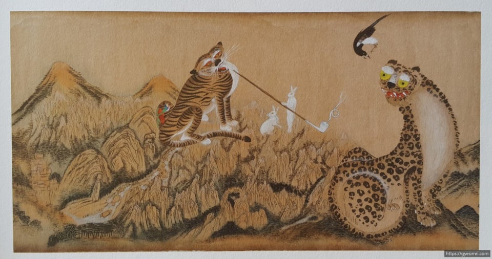 이러한 그림은 ‘까치호랑이’라 불리며, 조선시대 서민 가정에서 매우 인기가 높았다.